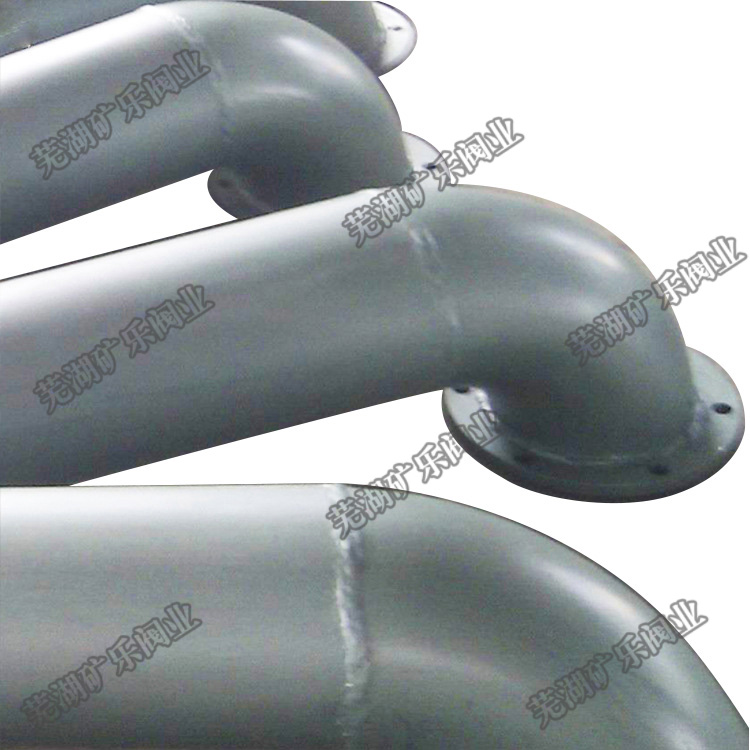 衬胶厚度4.5mm,长度可根据用户需要而设定。现有长度L1m~12m,口径DN50~800mm,公称压力≤4.0MPa,为适应浆体管道运输的需要,在生产各种衬胶阀门设备的同时,也生产各种形式的衬胶管件与之配套。主要有钢制衬胶弯头,钢制渐缩异径衬胶弯头、异径管、三通、各种角度不同弯头。